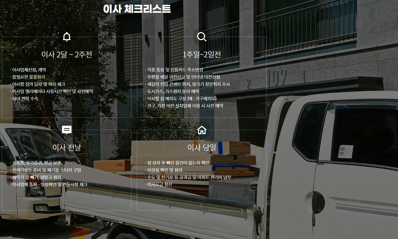- 이사 시 엘리베이터, 이사차량 공간 및 사용협조
