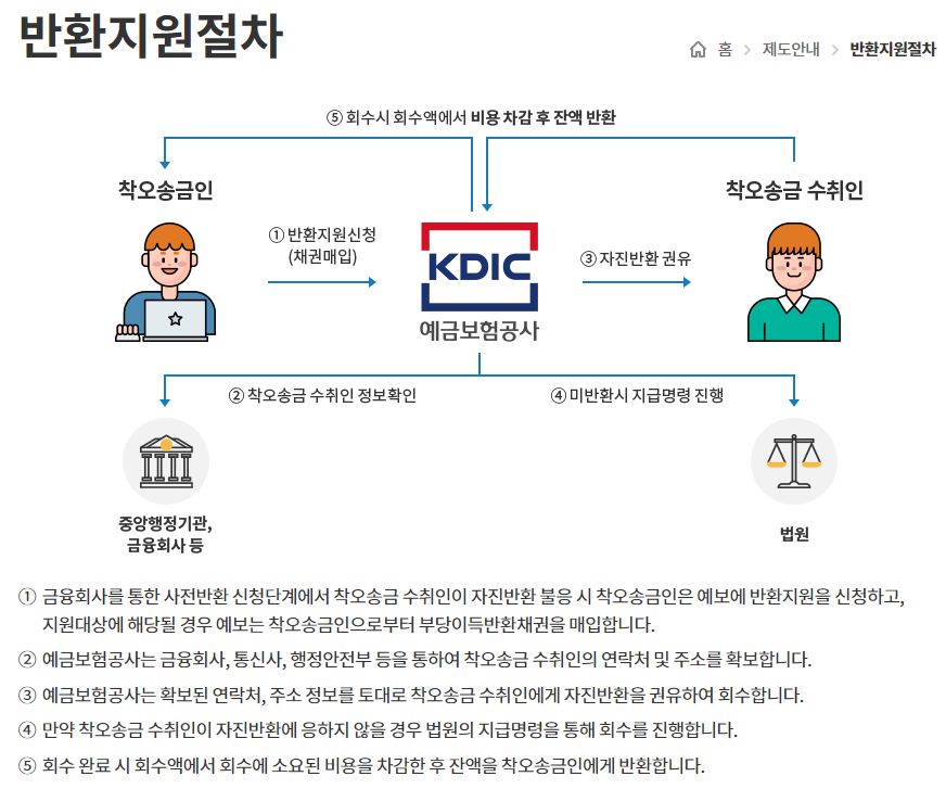 착오송금 반환지원정보시스템 : https://kmrs.kdic.or.kr/ko/index.do