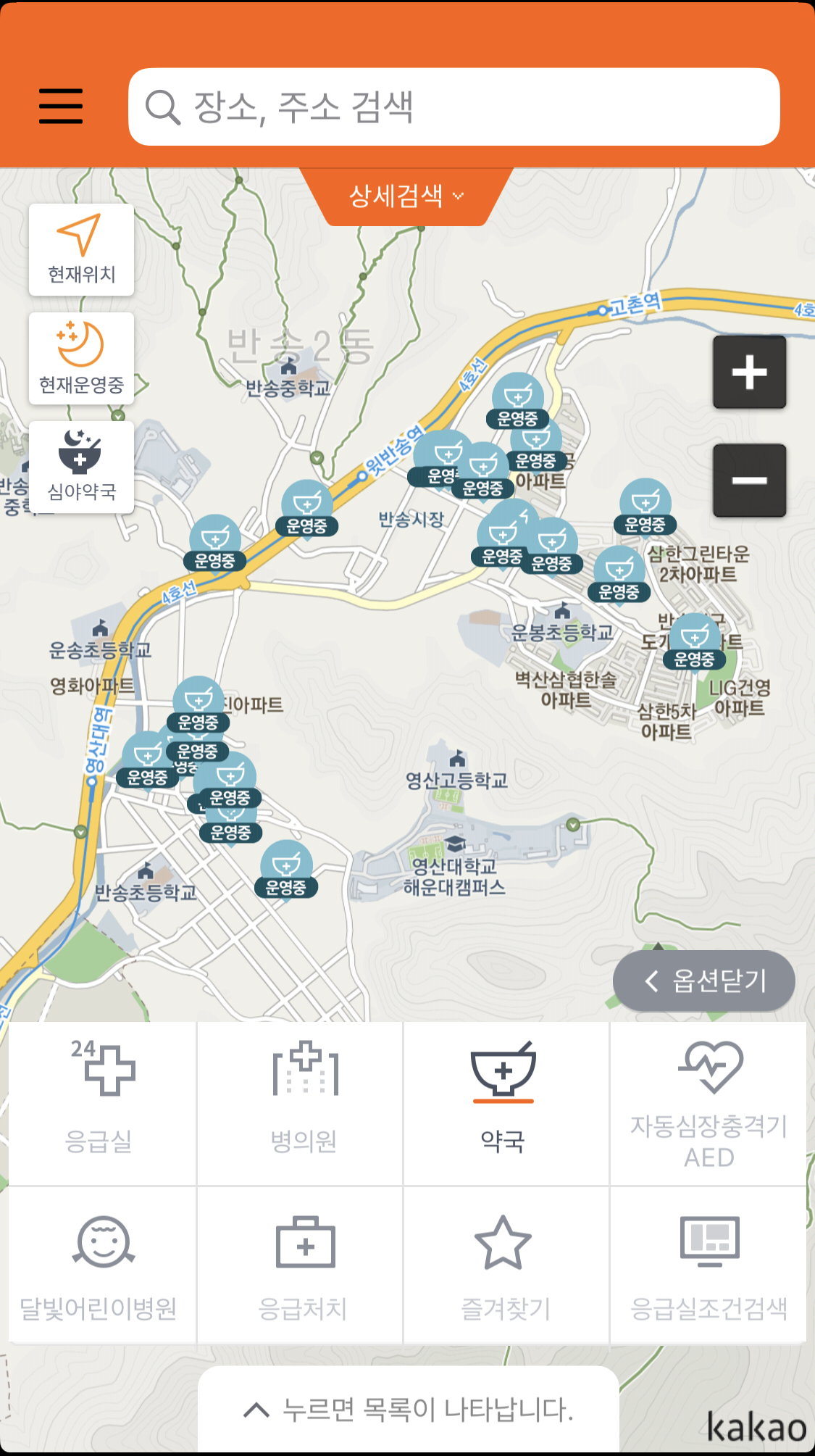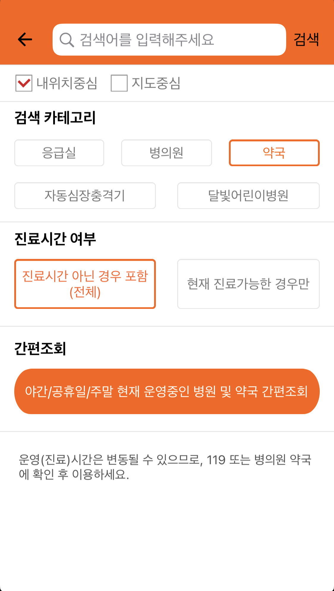 보건복지부에서 제공하는 병원/약국 찾는 어플입니다. 주변 또는 지도를 움직여 찾고있는 지역의 병원 또는 약국, 응급실을 찾을 수 있습니다.